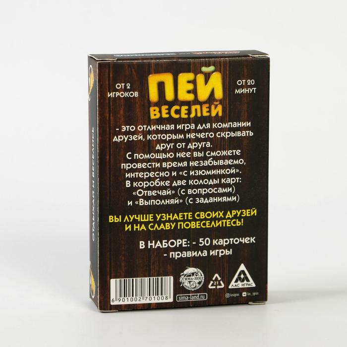 Купить игра для компании "пей веселей" 50 карт от 180 руб. с доставкой до пункта выдачи в Мензелинске. Интернет магазин ДекаМаркет. Оплата при получении.